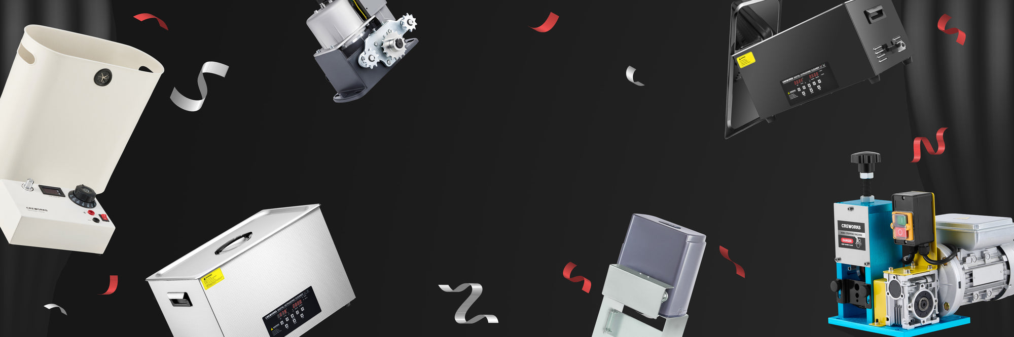 Creworks provides a diverse range of reliable and versatile machines including ultrasonic cleaners for precise cleaning tasks, mini excavators for construction and landscaping, wire stripping machines for recycling, and heat press machines for creative projects.