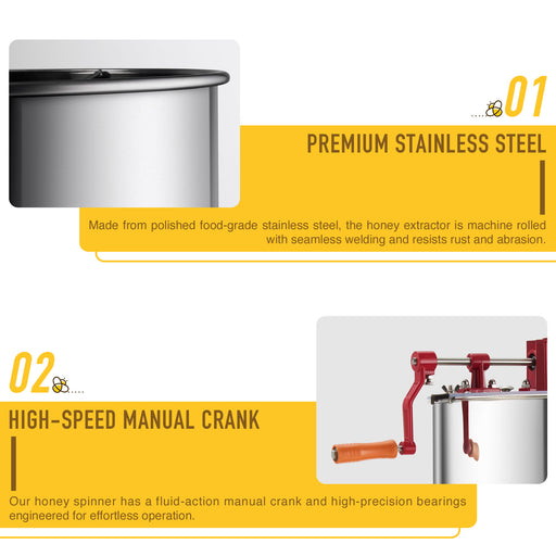 CREWORKS 2/4 Frame Manual Honey Extractor Spinner Beekeeping Equipment w/ Stand
