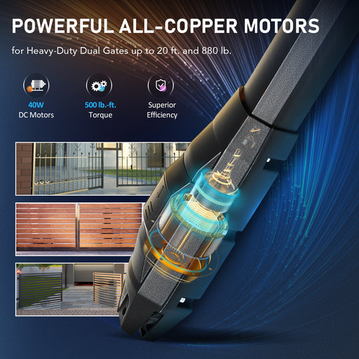 CO-Z Automatic Dual Swing Gate Opener Kit for Double Gates, Electric System for Gates up to 880lb and 20ft, Complete Kit with Remote Control for Driveways and Gardens