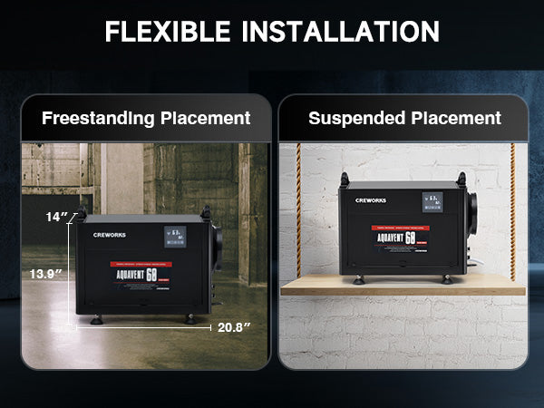Looking for effective dehumidification in larger spaces? Creworks has the solution with its commercial dehumidifier, tailored for areas spanning from 500 to 1440 square feet. Ideal for crawl spaces, basements, garages, and warehouses, this 130 ppd powerhouse swiftly eliminates excess moisture and musty odors.